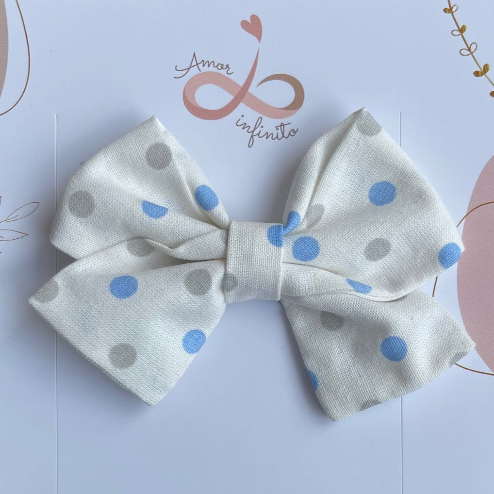 Moño Florencia Mediano Blanco lunares azules