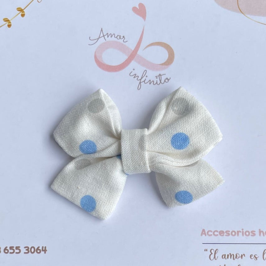 Moño Florencia pequeño Blanco con lunares azules