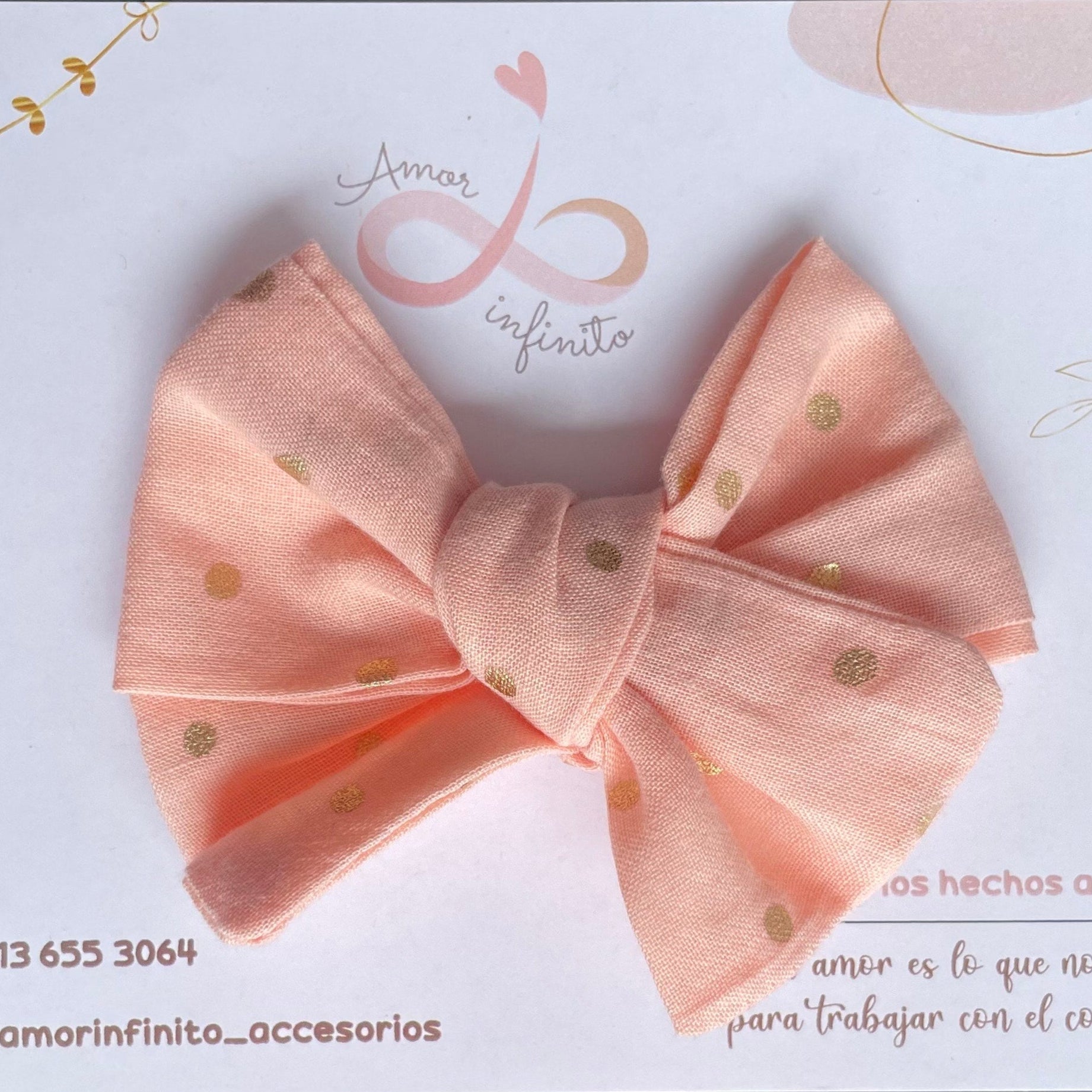 Tela: Fondo rosa con lunares dorados